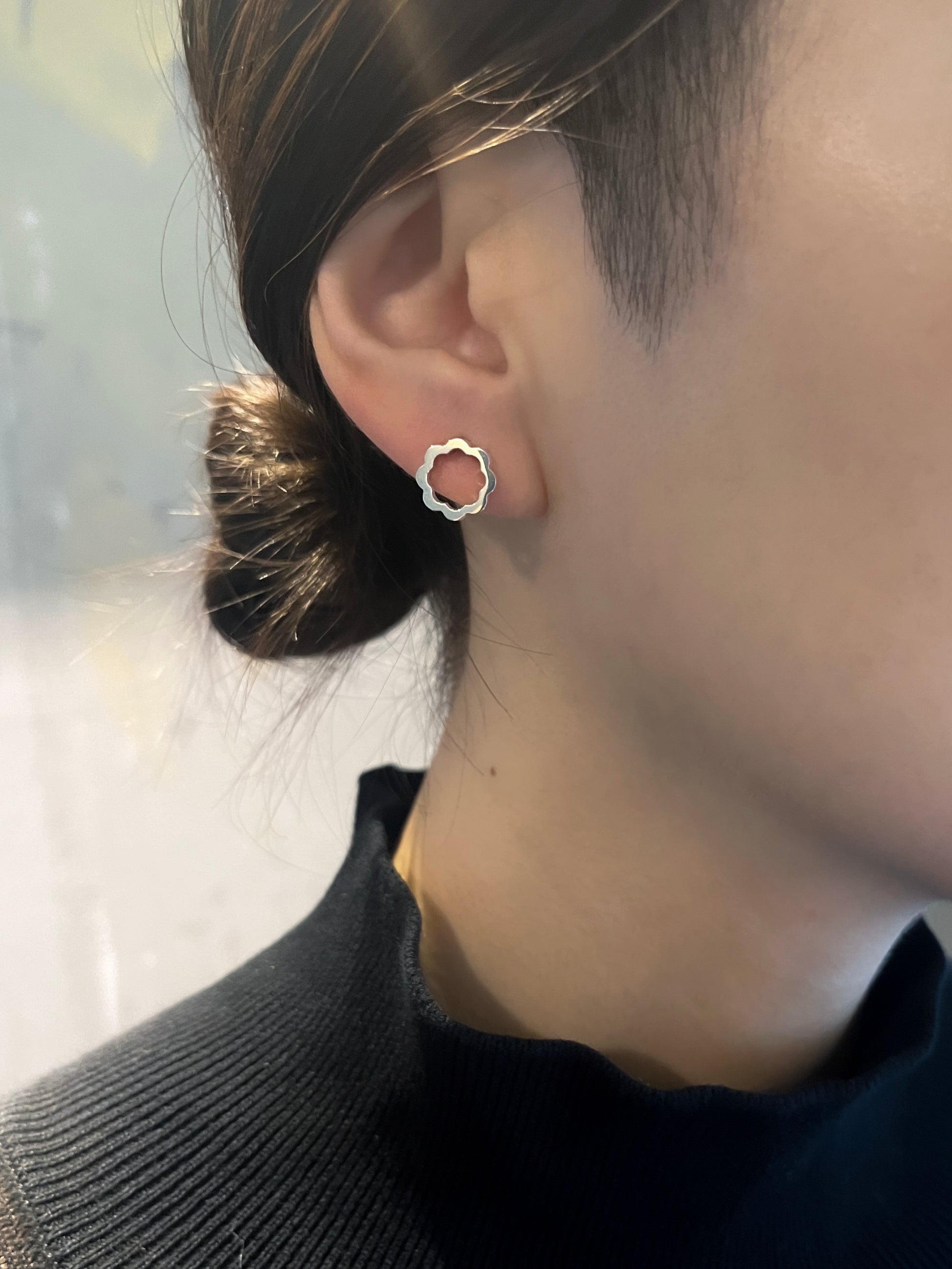 Flower motif earrings. The design was inspired by artist Cy Twombly's flower paintings. In addition, the Western aesthetic sense of bilateral symmetry, unambiguous lines, and solid weight and size create the beauty, strength, and luxury of flowers.