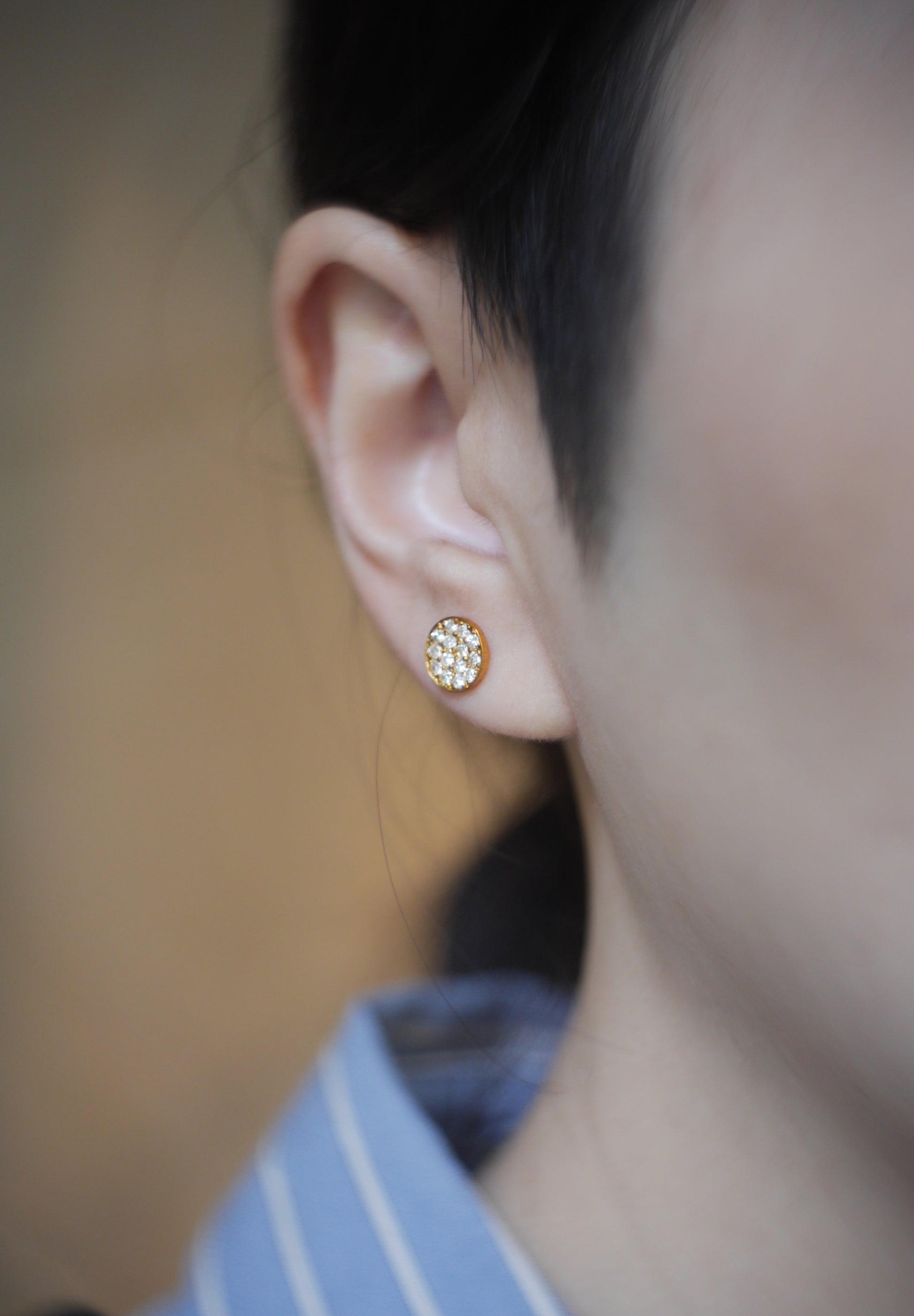 These earrings are filled with diamonds using a technique called pavé. "Pavé" means cobblestone in French. The design was inspired by the cobblestones of the Saint-Germain-des-Prés district in Paris.