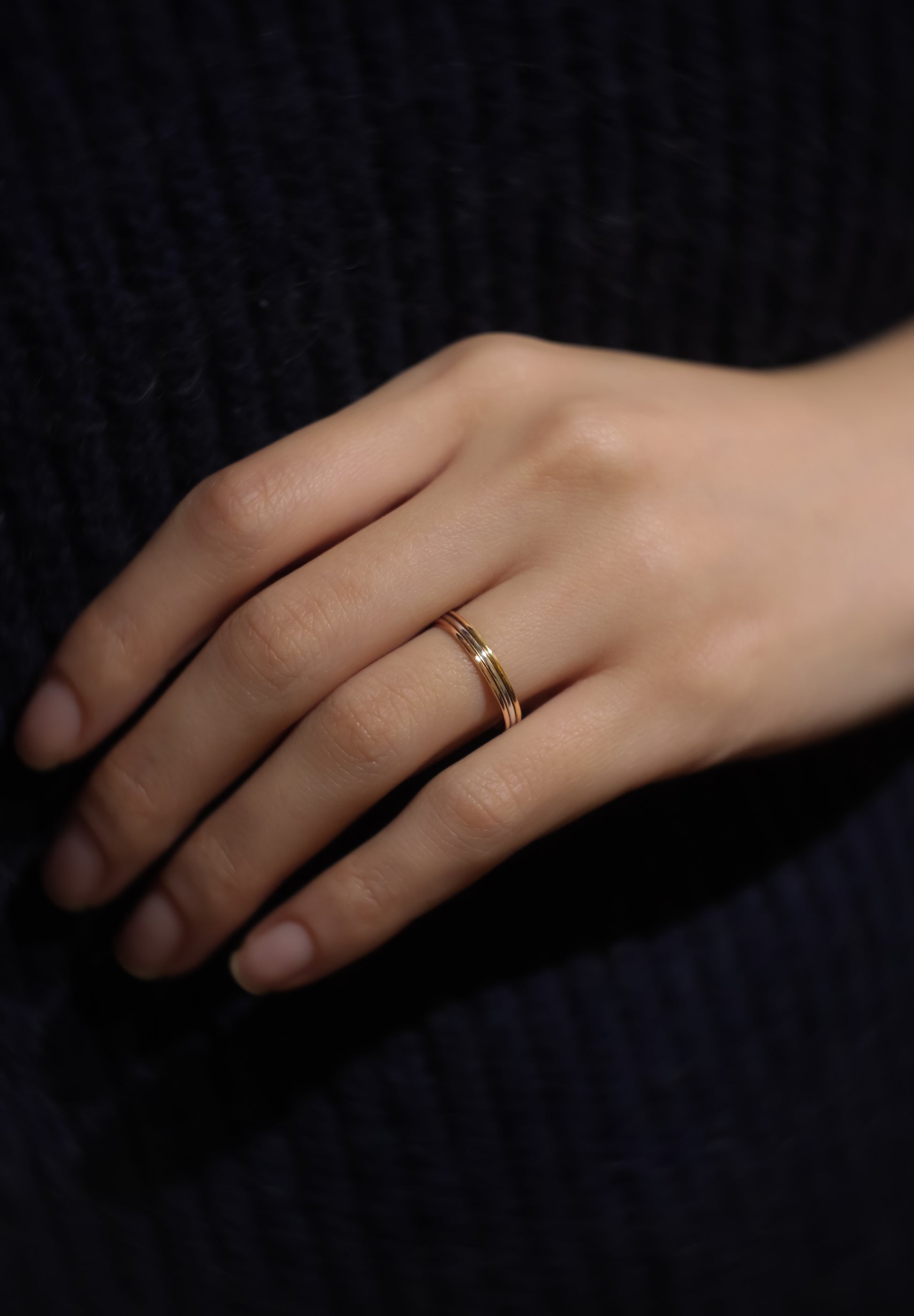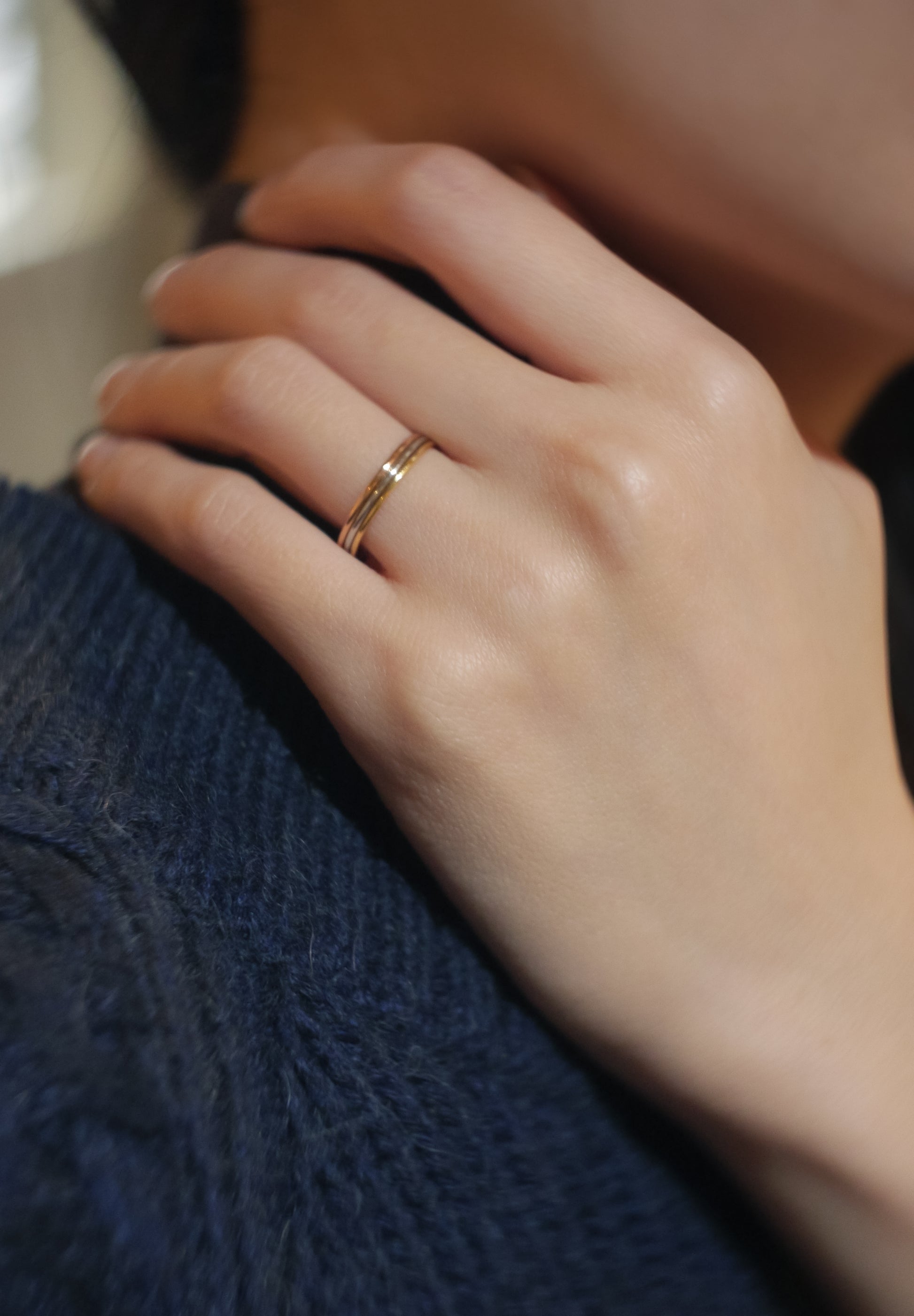 The ring is divided into 6 parts, and 18K yellow gold, pink gold, and platinum are evenly distributed.SHUN OKUBOThis item was made possible by the high skills of jewelry craftsmen. Three types of metal express "harmony".