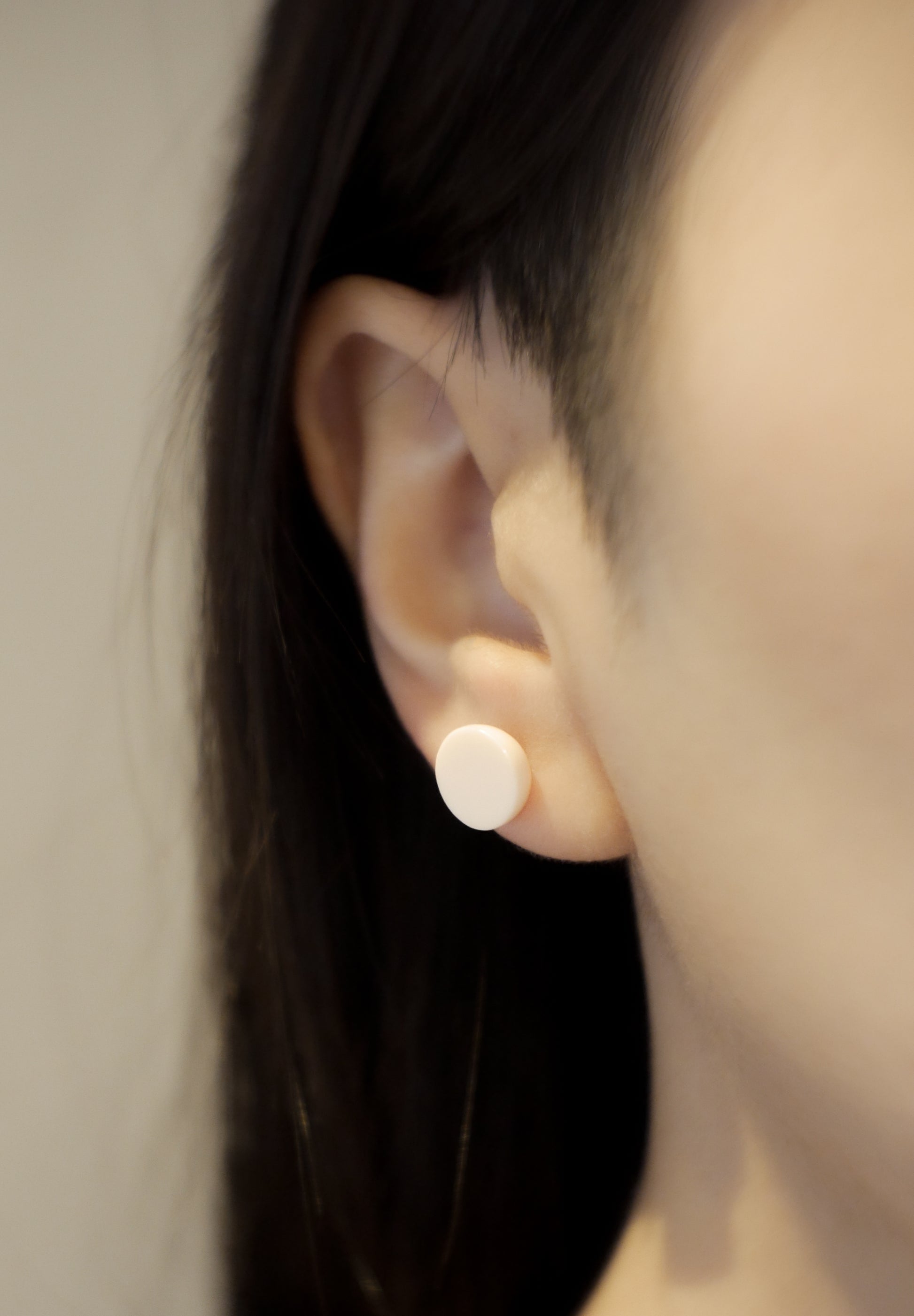 Earrings with a beautiful cross-section of white chalcedony. The beauty of geometry and the mystique of natural stone, which craftsmen carefully create one by one. This item is unique but also dignified. (*The color of each stone may vary slightly due to the nature of the stone.)
