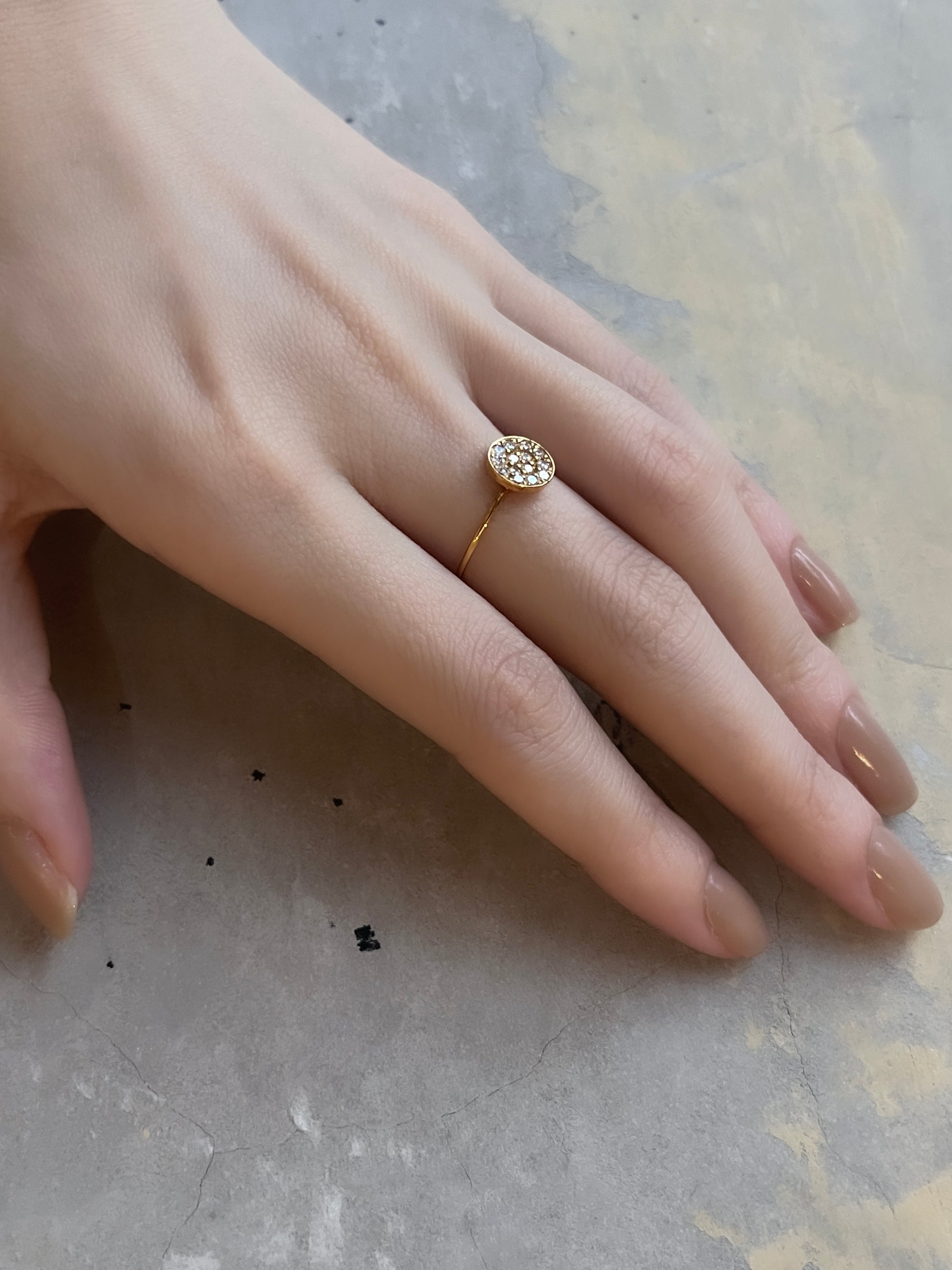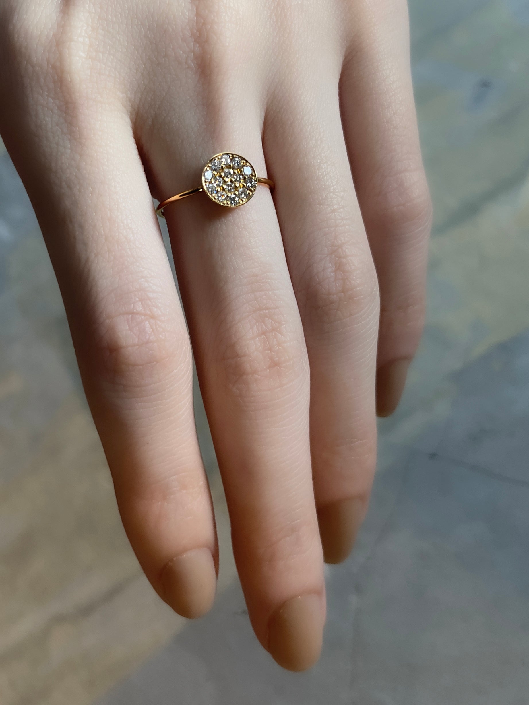 A ring filled with diamonds using a pavé technique. "Pave" means cobblestone in French. The design was inspired by the cobblestones of the Saint-Germain-des-Prés district in Paris.