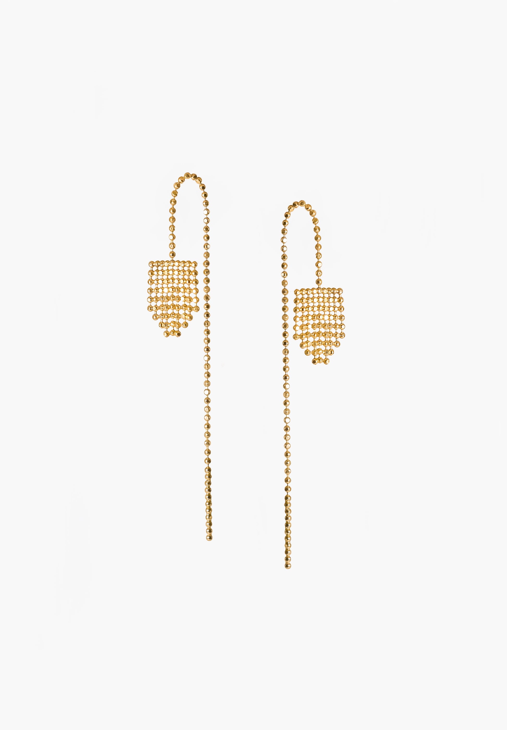約1.0mmのボールカットチェーンが、房のように重なり、繋がり、美しいシルエットを形成しています。また、ボールチェーンを溶接し固める技術により、無駄を削ぎ落とした完全にミニマルなスタイルを実現させました。