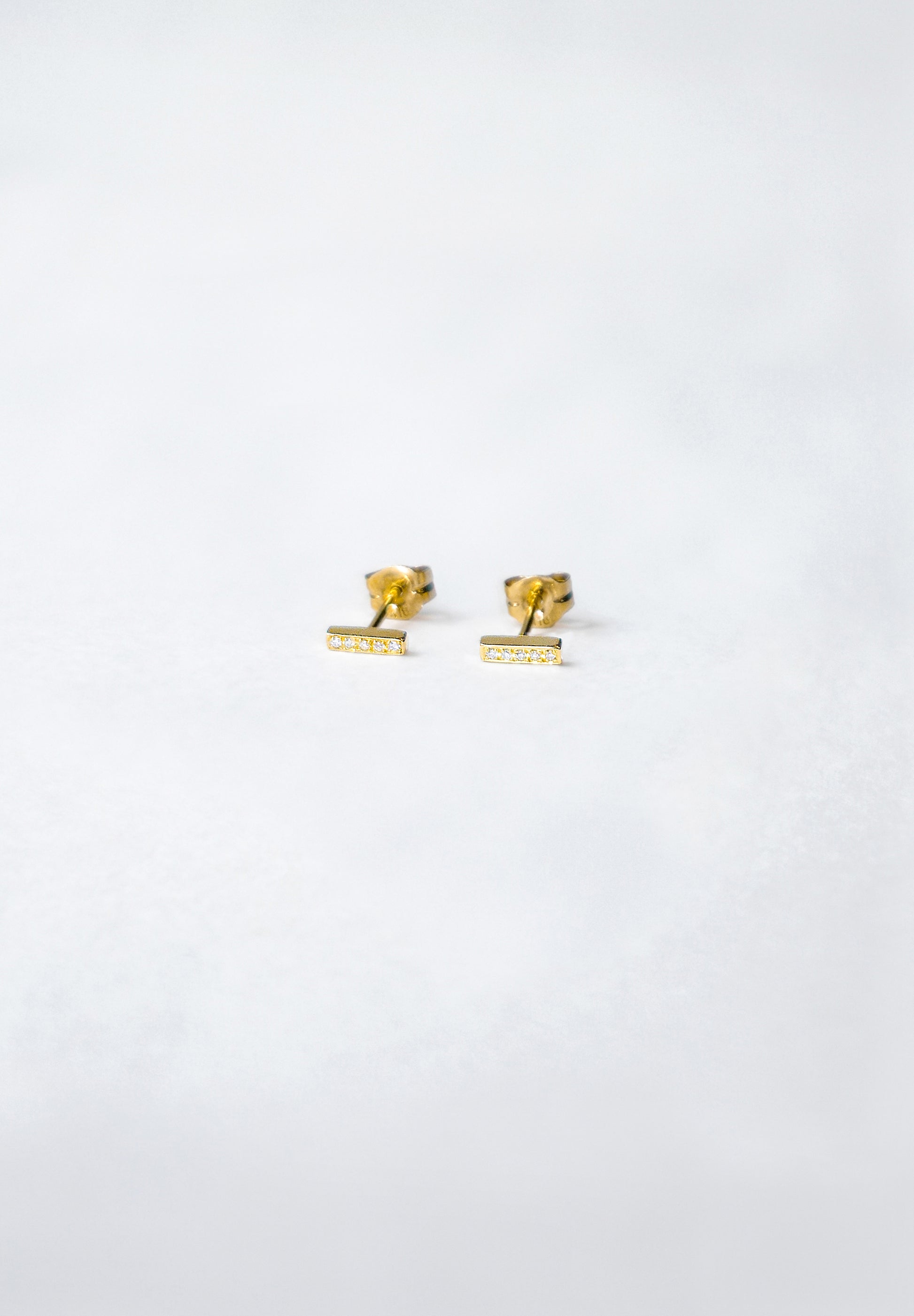 ミニマルなシルエットのダイヤモンドのピアス。静かなデザインながら、直線が感じさせる凛々しさを備えた、どんなシーンにも合わせられるアイテム。