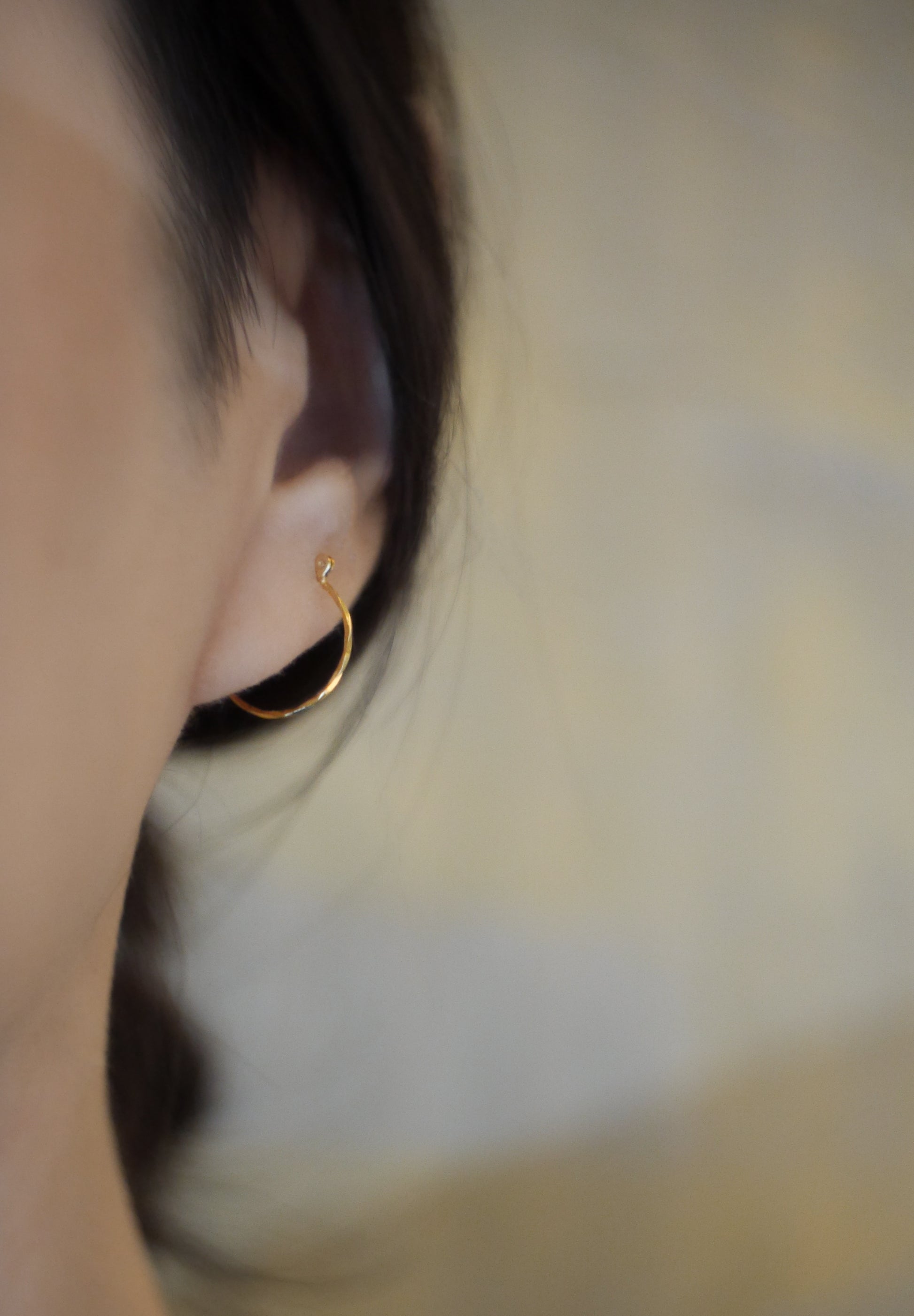 約0.8mmのK18の線で作られたフープピアス。カッティングの装飾が施された線は、繊細かつシャープな光を放ちます。
