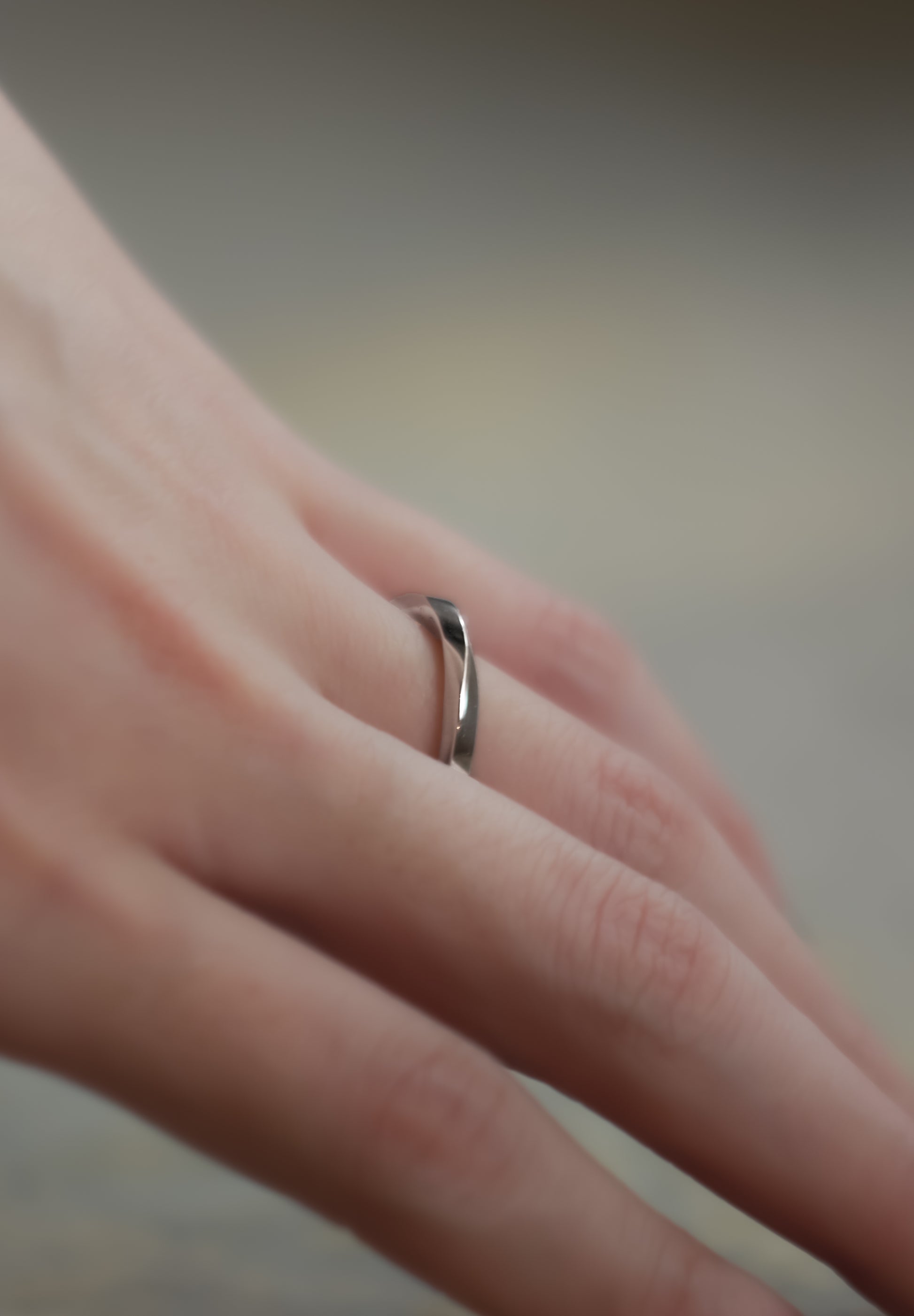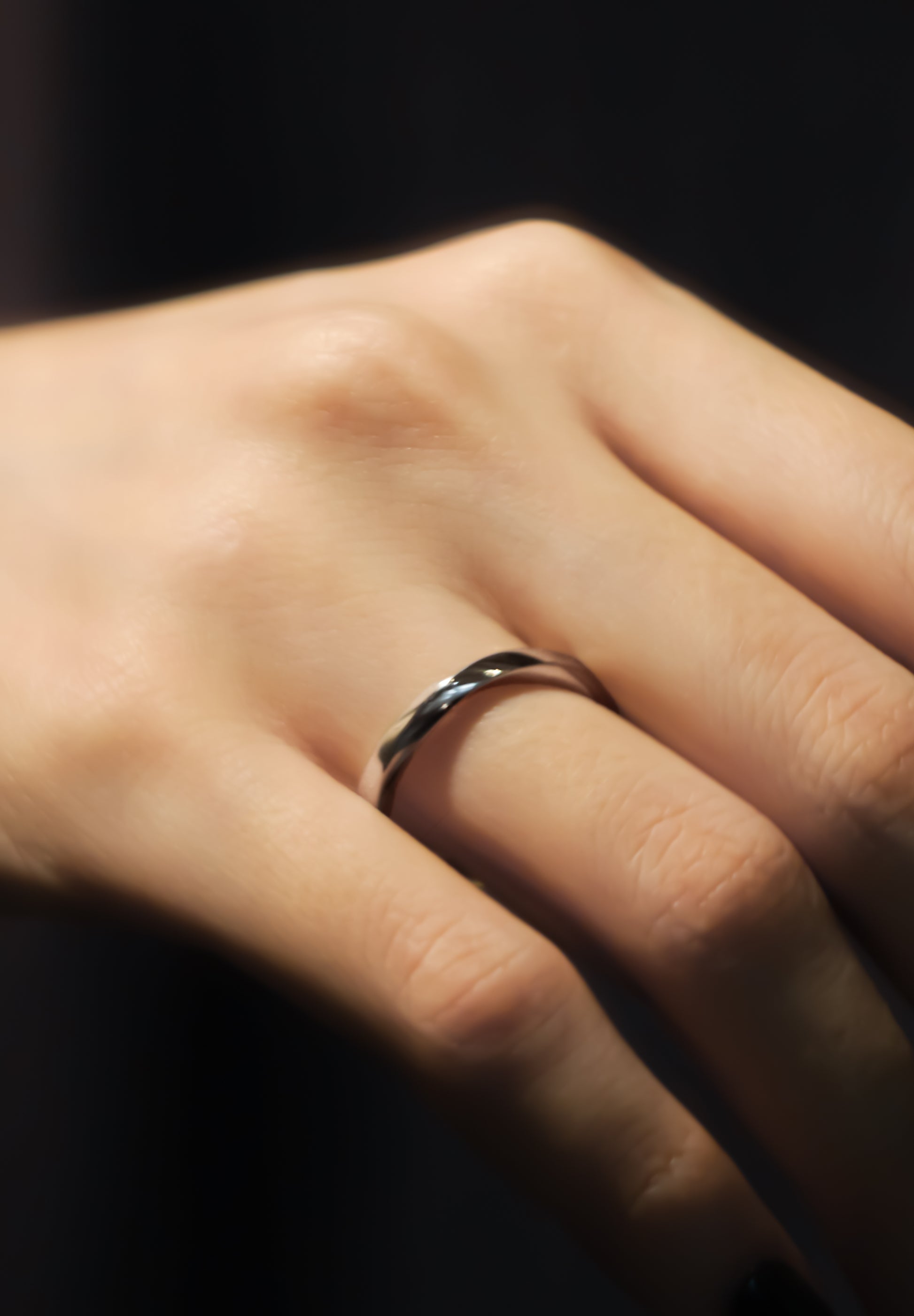バラをイメージし、花びらを抽象化した詩的なリング。花弁のような流線形が、滑らかで有機的なシルエットを描きます。